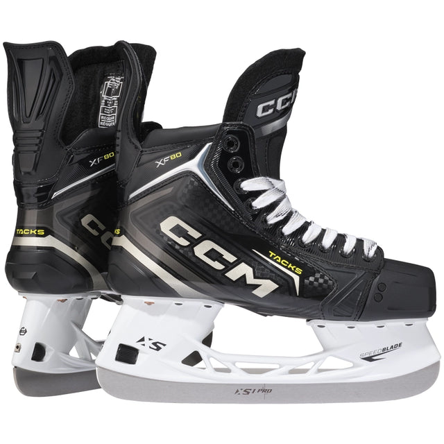 CCM's TACKS XF80 skate features CCM’s one-piece boot construction for more direct energy transfer and a closer fit so that you get the most out of every skating stride. Equipped with new and improved XS PRO Stainless runners with added height and thickness to give you the ultimate edge over your opponent. The Flex Tendon 3.0 provides a range of motion and improved agility, coupled with improved ankle foams for comfort, you will feel great and play great.