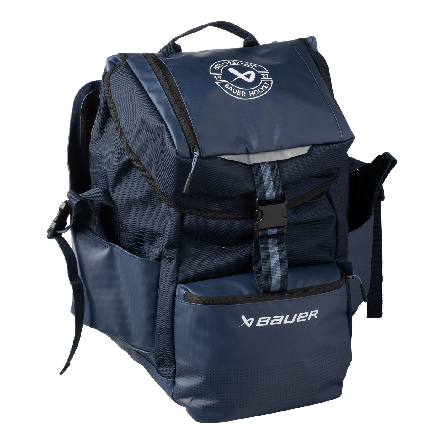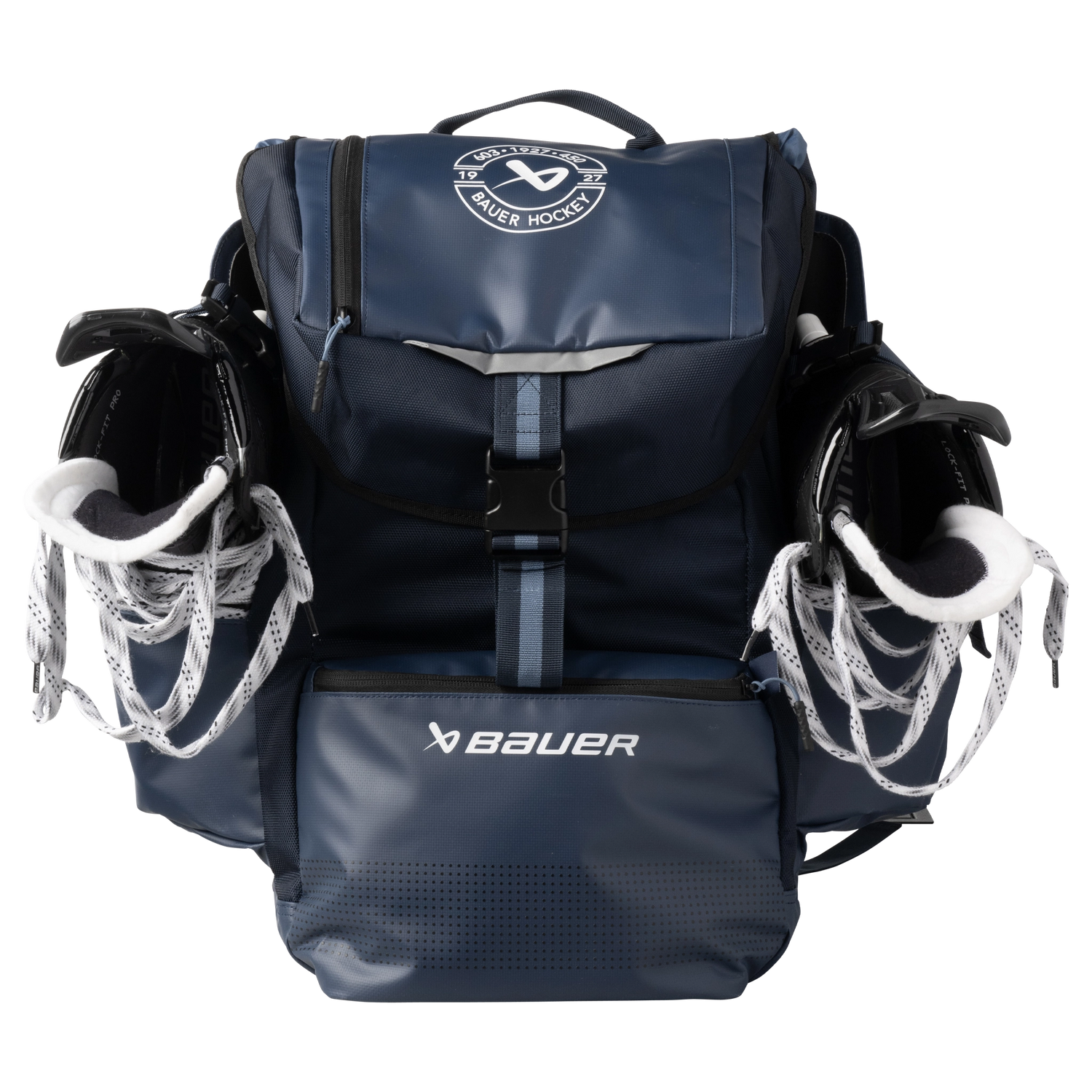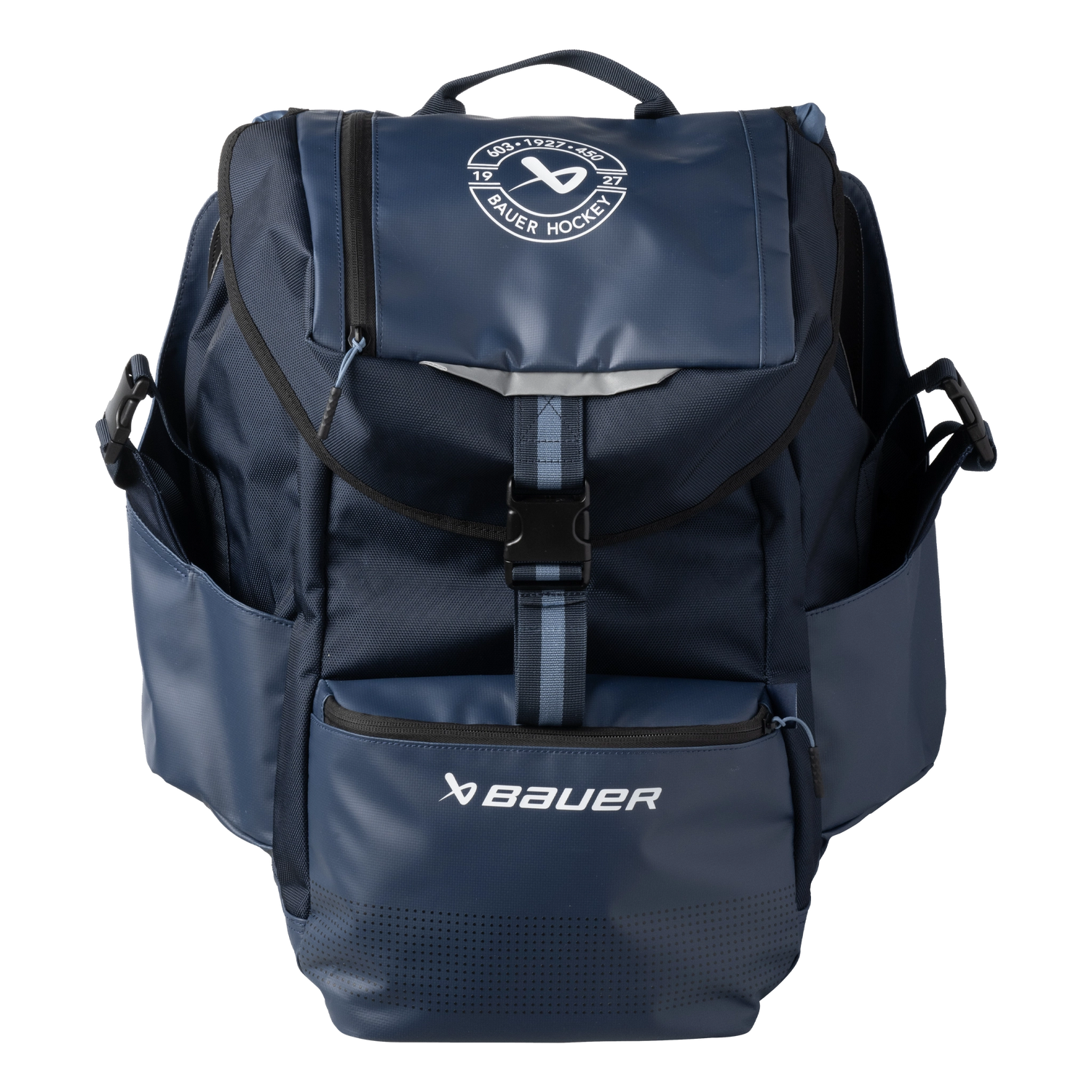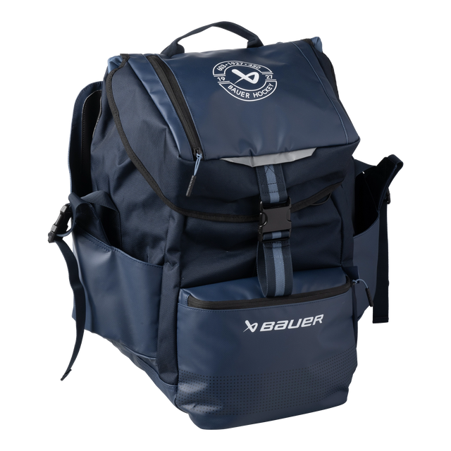 Pack for the perfect day on the pond with the BAUER Outdoor Rink Bag. External skate pockets and a helmet clasp make your gear easy to carry to and from the rink all winter long. A large main compartment also has plenty of room for everything from snacks to jackets, with internal organizers and small pockets for accessories and other rink-side essentials. When you finally step off the ice, a built-in bottle opener and cooler pocket make sure your post-game refreshments are ready to enjoy.
